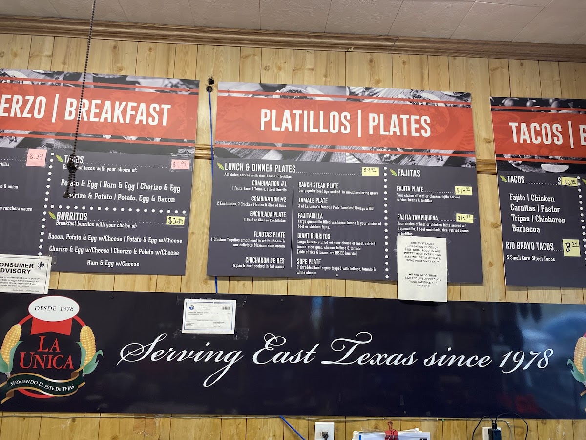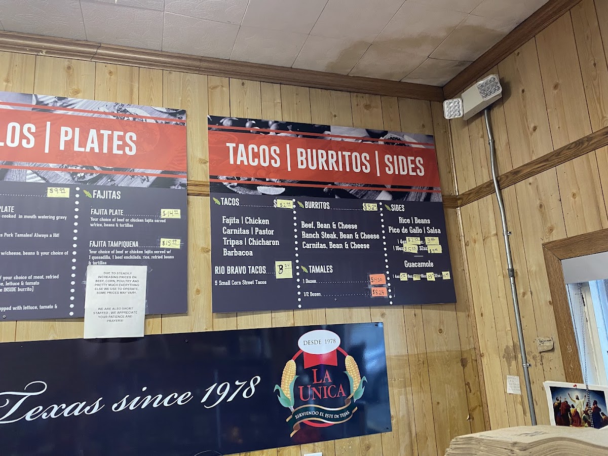 If you're craving authentic, mouthwatering Mexican food, look no further than La Unica Tortilleria Menu. Located at 1614 N Raguet St, Lufkin, TX, this spot is all about serving up freshly made tortillas paired with rich, flavorful fillings. Whether you're in the mood for something savory like the perfectly seasoned tacos or ready to indulge in a hearty plate of enchiladas, every dish is crafted with care. The variety of options here guarantees that there's something to satisfy every taste, from classic favorites to special regional dishes that transport you straight to Mexico. Don’t forget to pair your meal with one of their refreshing drinks-it's the perfect way to round out your experience. At La Unica Tortilleria, the menu isn’t just a list of items, but a celebration of vibrant flavors and tradition.
